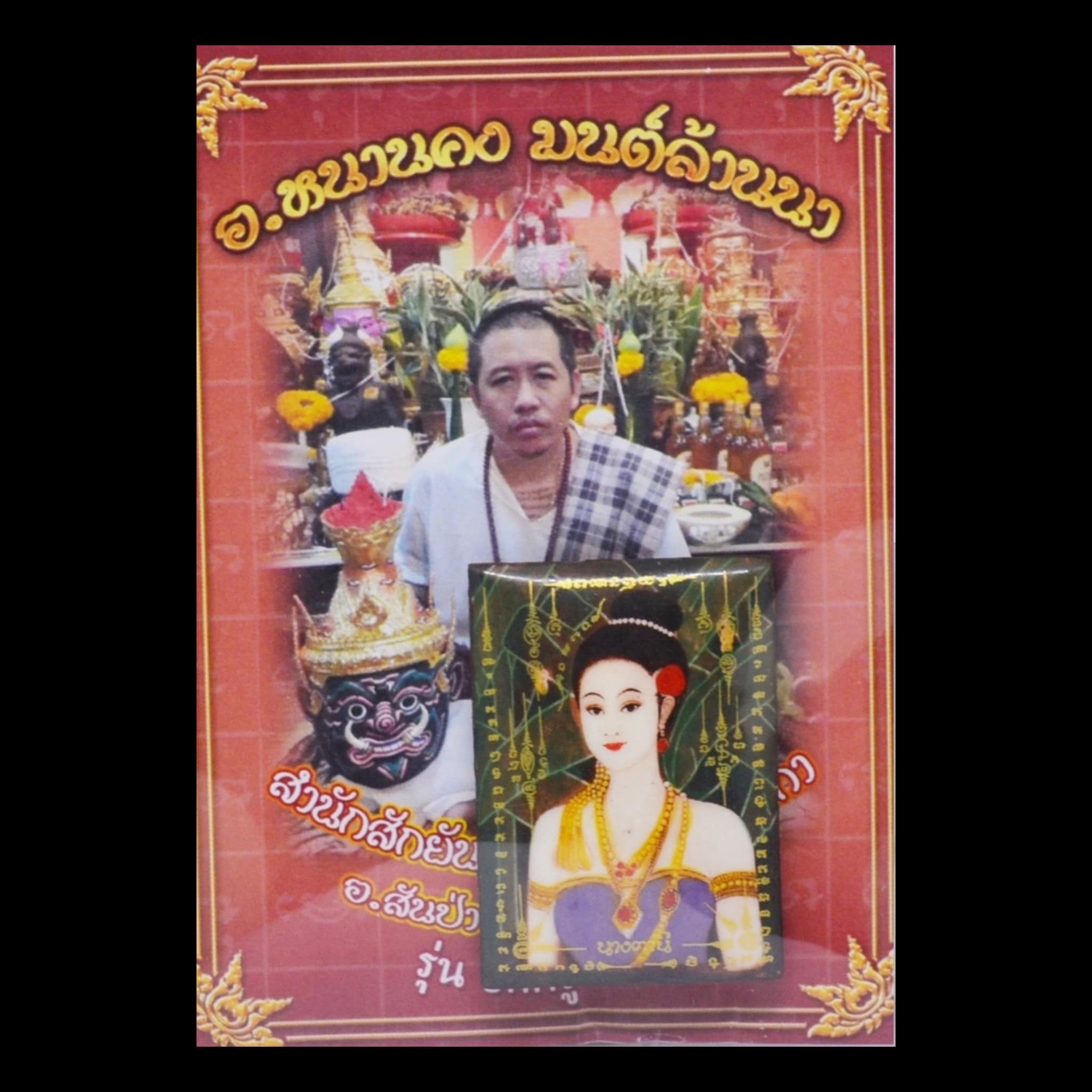 Dieses bezaubernde Medaillon, gefertigt vom Meister Ajarn Nan Khong, wurde geschaffen, um die Kraft der Liebe zu verstärken. Angereichert mit mystischen Kräutern (Aloe Vera) und magischen Substanzen , verströmt es eine betörende Aura, die Herzen erobert.
