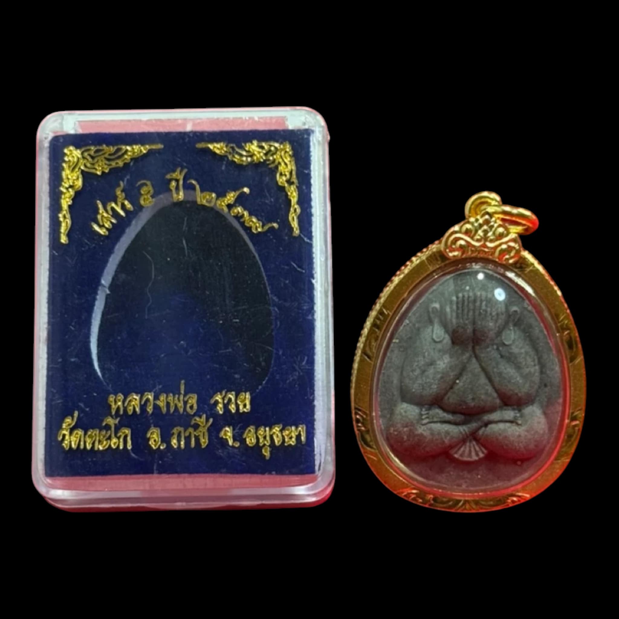 Este es el Phra Pidta Jumbo del prestigioso Luang Phor Ruay Pasathiko de Wat Tako, provincia de Phra Nakhon Si Ayutthaya, fabricado en el año 2539 a . C. Este Watthu Mongkhon (Objeto Sagrado) es un artículo auténtico del codiciado Roon Sao Ha (Sábado Auspicioso).