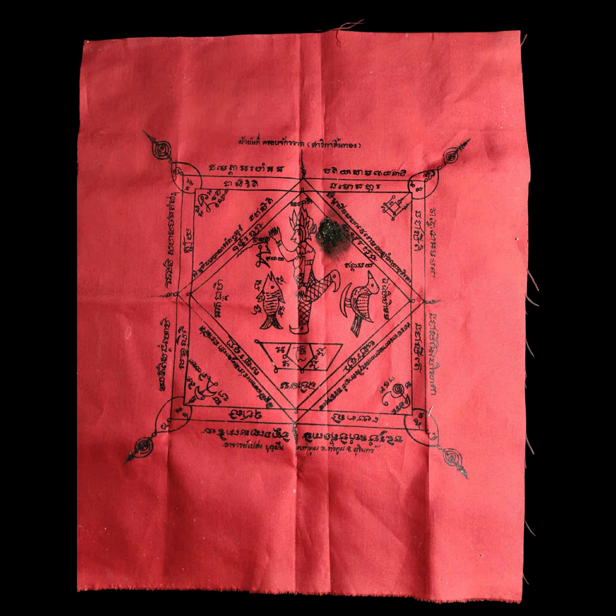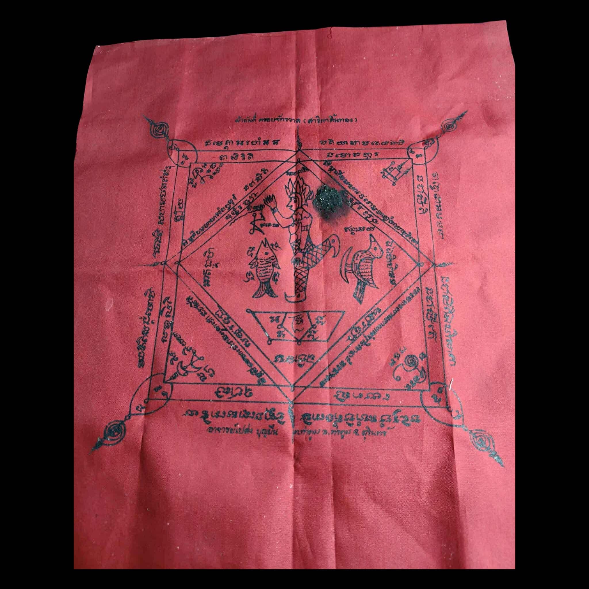 Matériau : Yantra en tissu imprégné de pâte d'herbes sacrées et de poudre de Prai du rituel BE 2543.