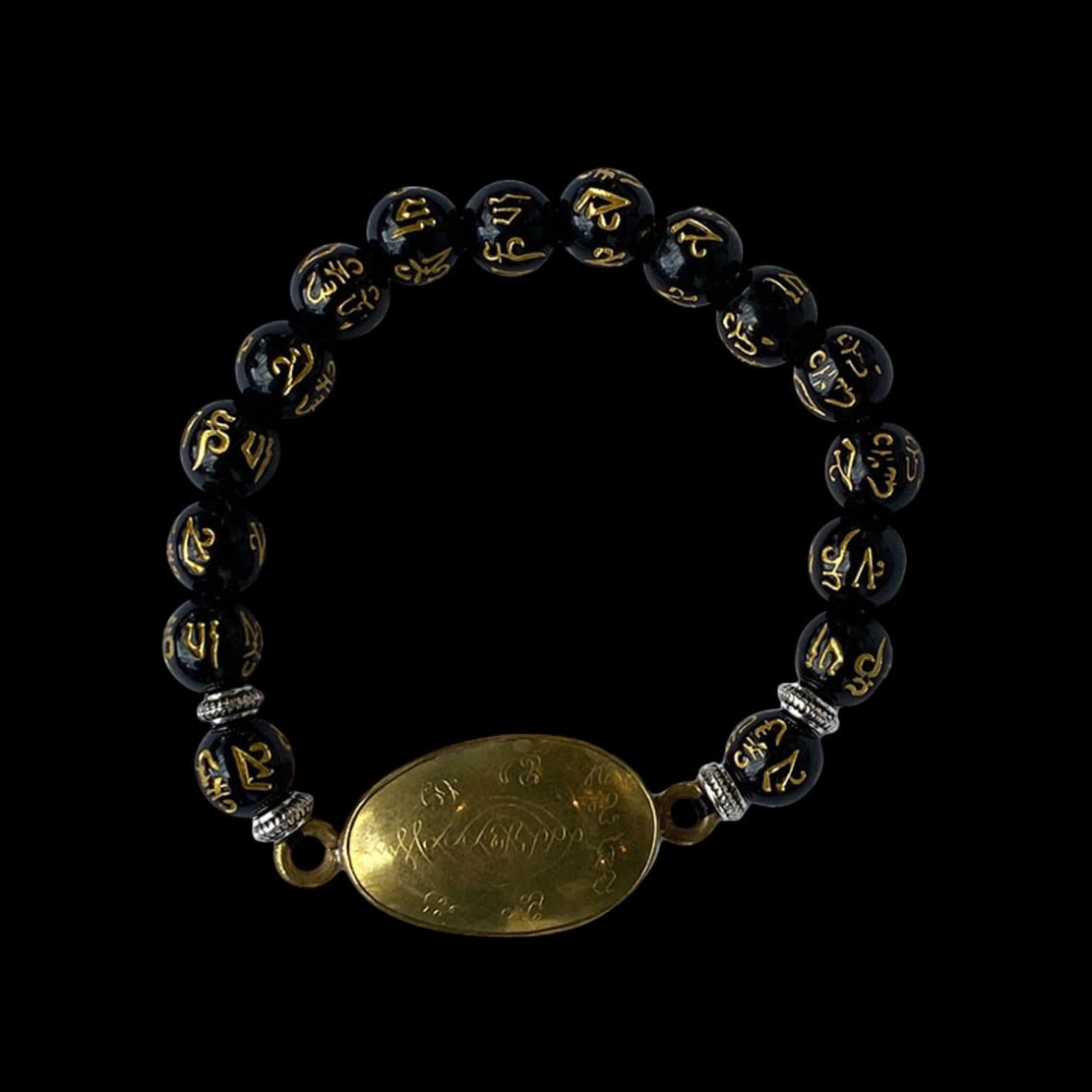 Infuso con l'antico misticismo della Thailandia meridionale, si ritiene che questo potente braccialetto Bia Kae Maha Lap offra protezione spirituale , fortuna e protezione dalle forze oscure . Il sacro ciondolo a conchiglia (Bia Kae) è placcato in oro utilizzando una lega chanuan benedetta e si carica di energia spirituale attraverso un rituale di consacrazione di massa guidato dal maestro 106enne Luang Pu Im Panyawutho di Wat Thung Na Mai , Nakhon Si Thammarat.