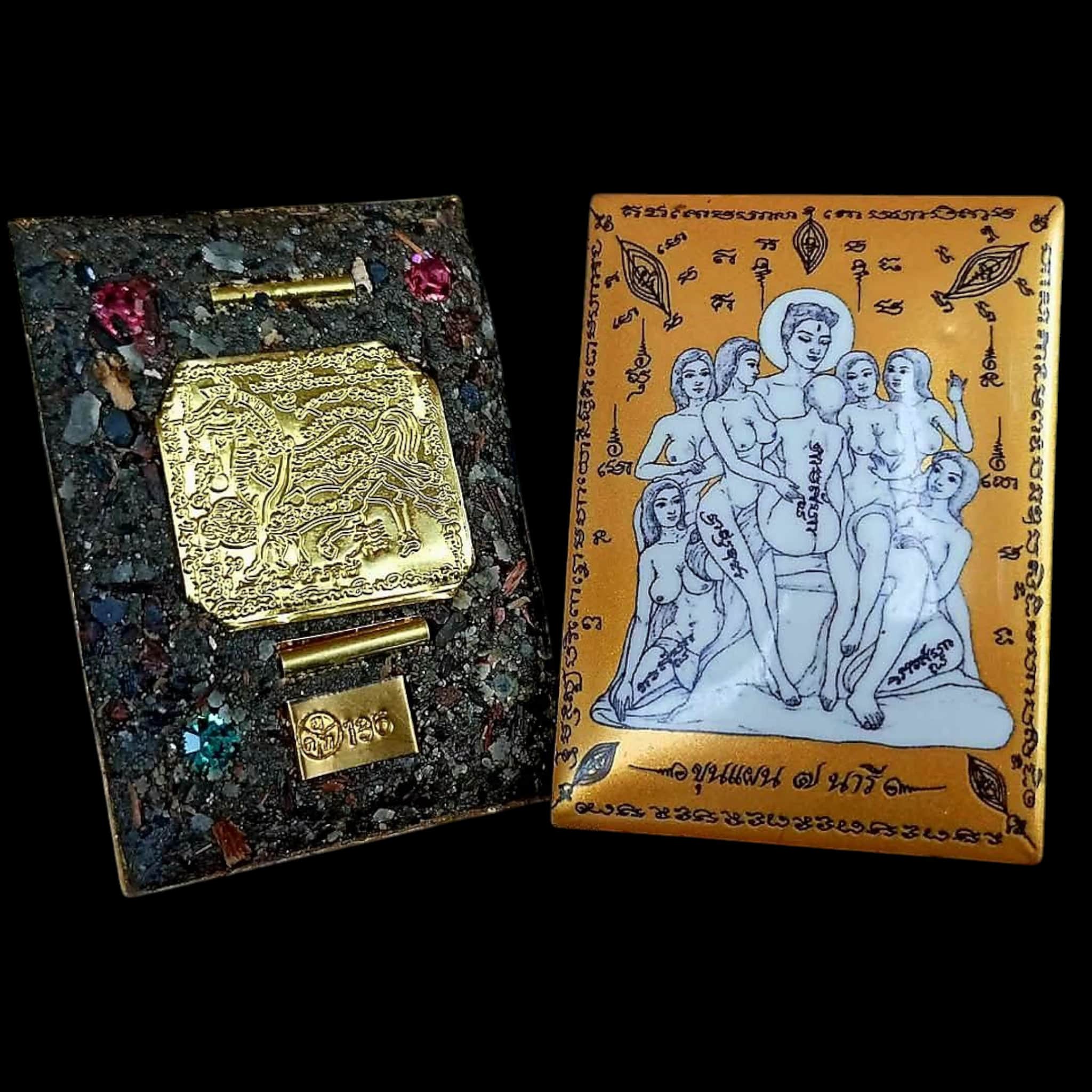 Abbraccia il potere dell'amore, dell'attrazione e del fascino con il sacro medaglione Khun Paen 7 Naree , consacrato da Luang Pu Udomsub Sirikhutto di Wat Weluwan Thamaram, Sisaket . Questo potente medaglione è infuso con materiali sacri e antiche formule di fascino note per metta maha saneh (fascino irresistibile) e attrazione per la ricchezza .