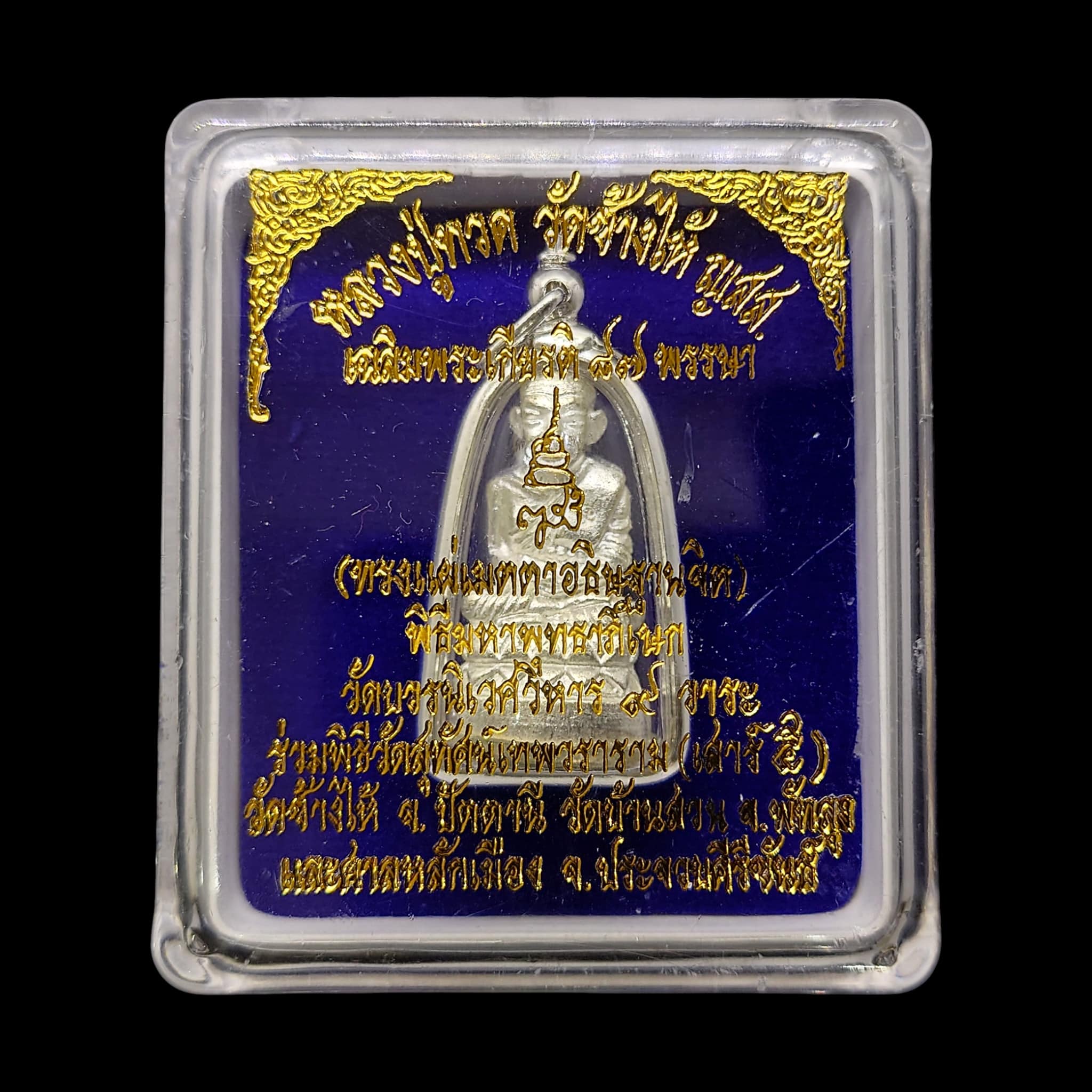 Lega Nawa Luang Pu Thuad "Bua Rob" con essenza d'argento e base in oro bianco - Edizione per l'87° compleanno di Somdet Phra Nyanasamvara | Wat Bowonniwet Vihara (BE 2543)
