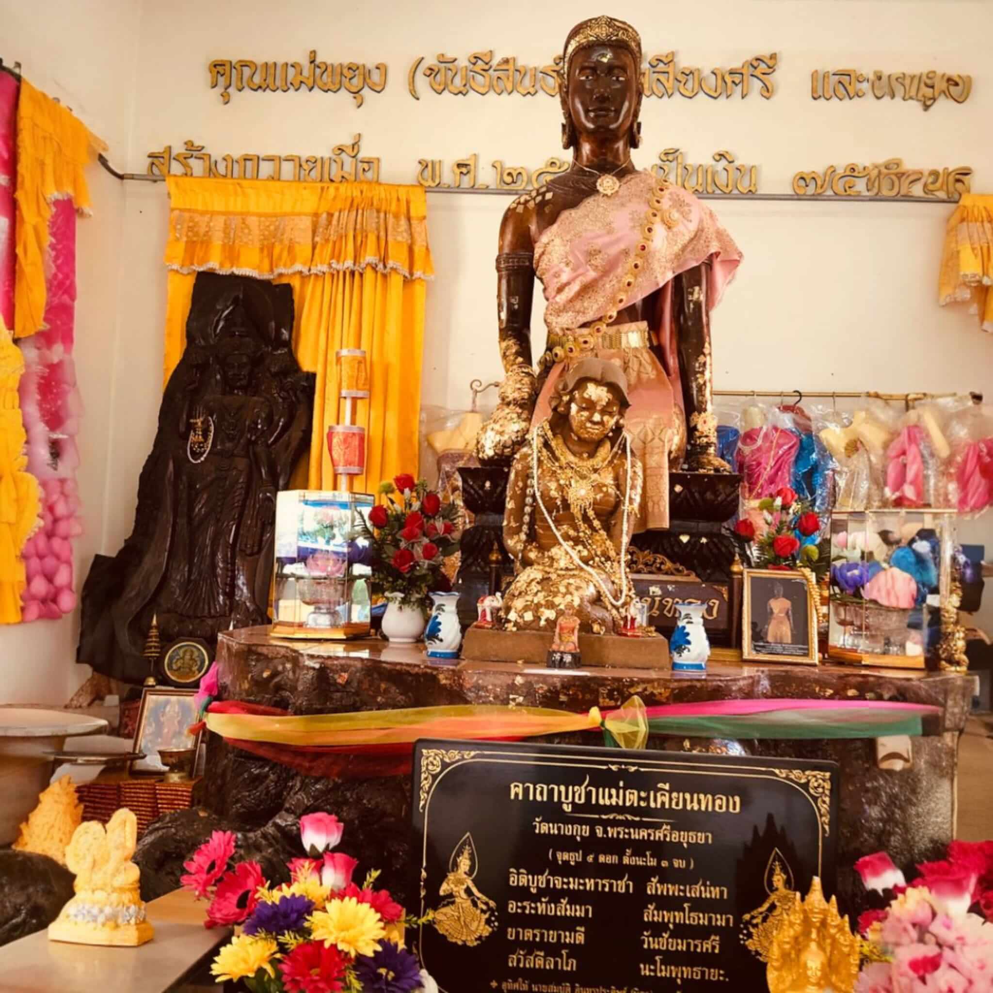 Dopo che l'albero morì naturalmente intorno al BE 2540 (1997) , il tempio preservò la sua eredità scolpendo la figura della Dea Madre Takhian Thong e riponendola sul ceppo originale come oggetto di riverenza e benedizione per i fedeli.