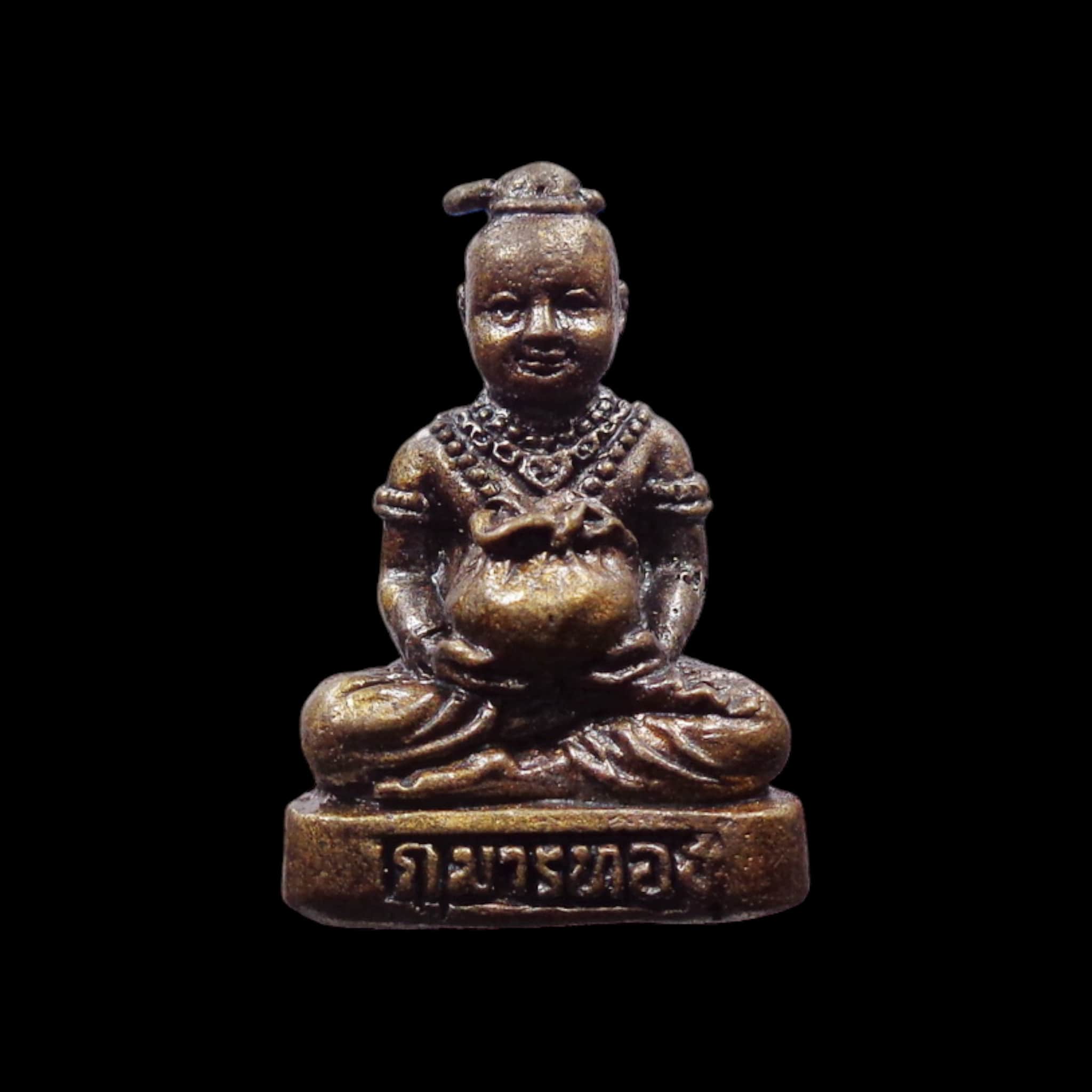 Kuman Thong (กุมารทอง) has been a revered figure in Thai mystical traditions, especially cherished by business owners, merchants, and those seeking good fortune. This compact amulet is ideal for daily carry or display in your shop or home altar.