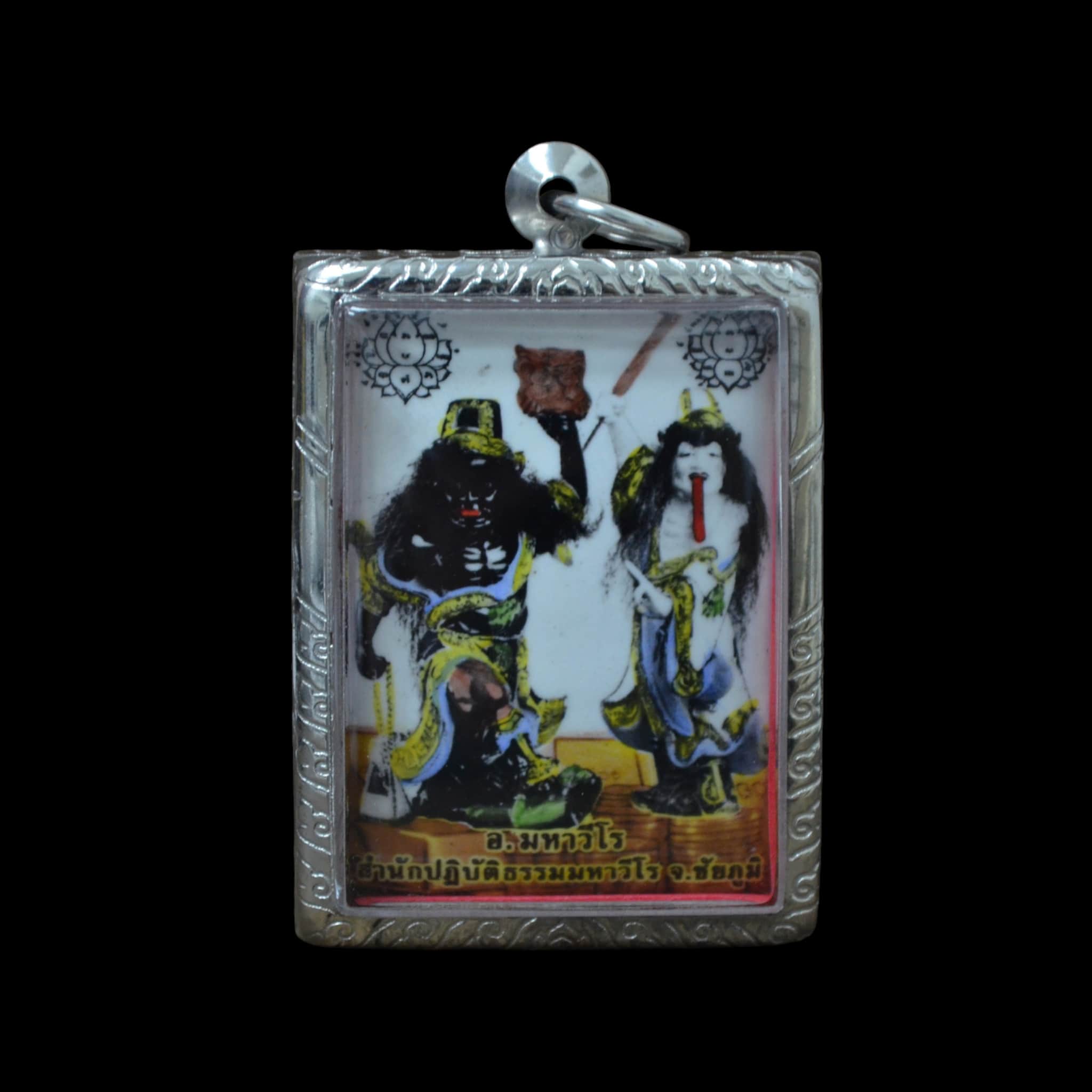 This Chom Phut Black and White locket is a powerful protective amulet created and blessed in BE 2561 by Phra Ajarn Amnat Mahawiro, a respected master from Chaiyaphum Province.