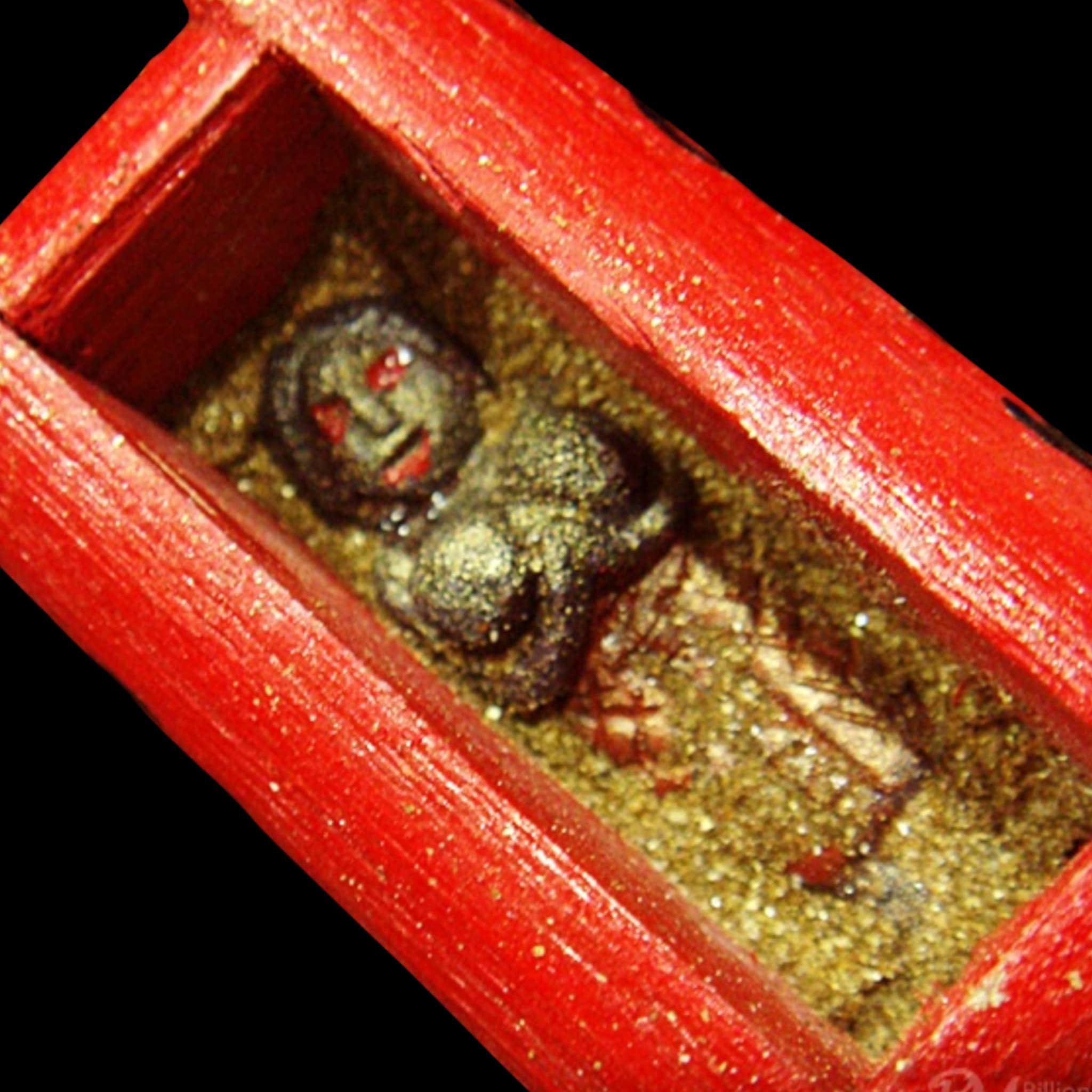 The Kimpang lucky coffin form is traditionally revered by Chinese believers as a magnet for abundant money and good luck. The spirit entity, Thep Nang Chan, focuses its energy on two crucial areas: