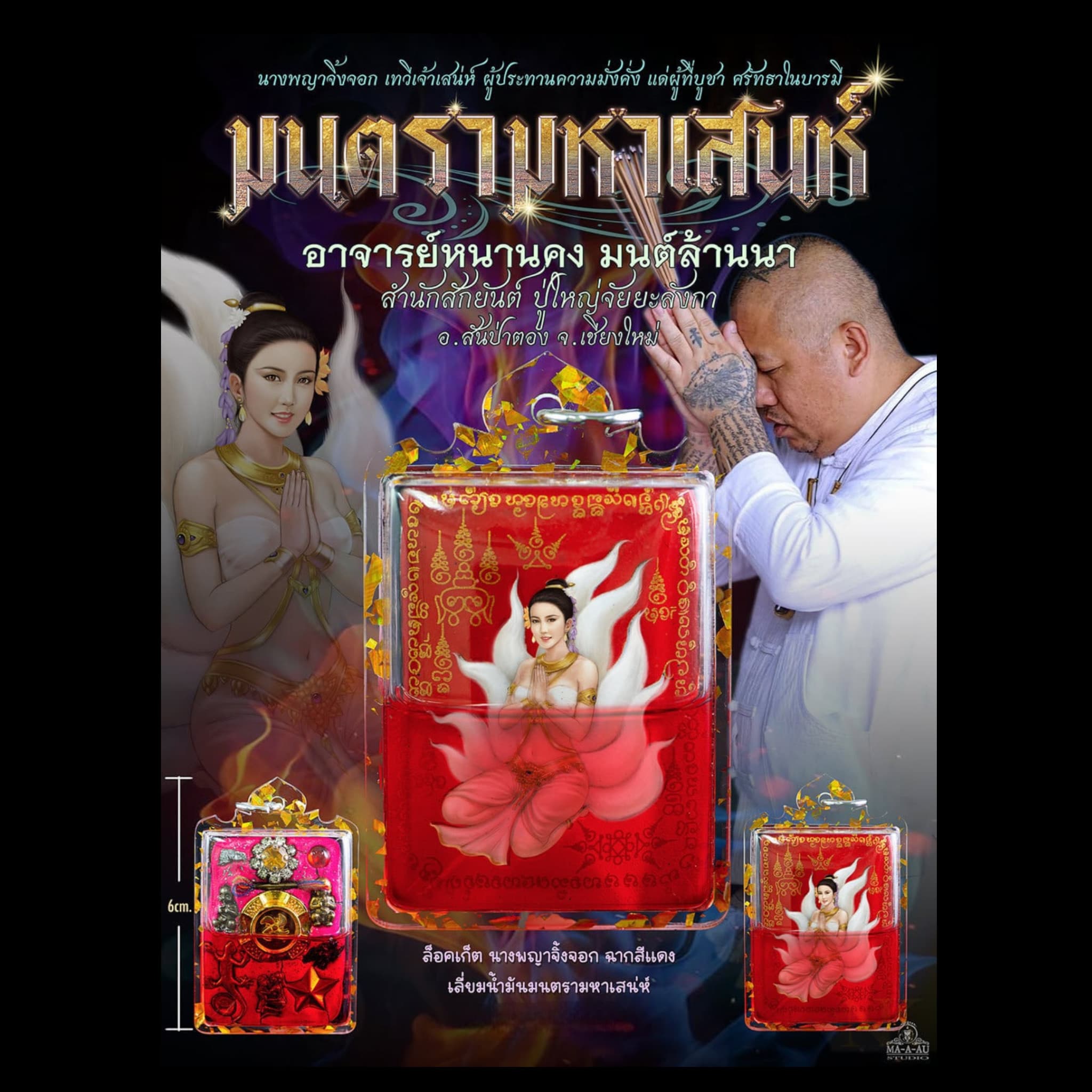 This Nine-Tailed Fox Goddess Queen Amulet is a powerful spiritual treasure, crafted and blessed by Ajarn Kong Sak, one of Northern Thailand’s most renowned masters of charm and attraction magic. A rare and highly revered amulet, this piece is part of a limited edition of only 89 pieces, each personally consecrated by the master.