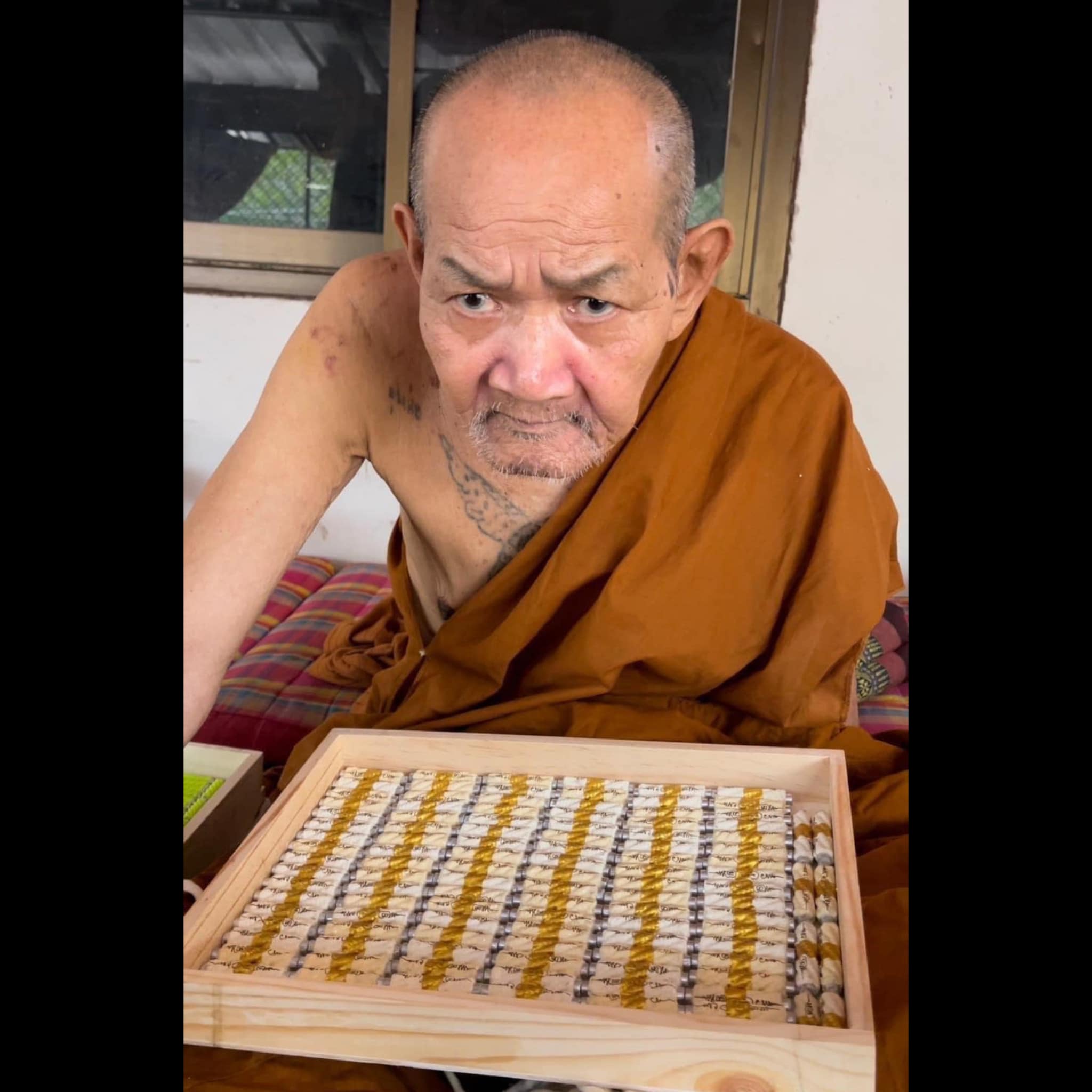 Traditionally, this sacred formula (Katha Pla Lai Pheuak) was used to bless water or saliva for warriors, allowing them to become “untouchable”, blades wouldn’t pierce, and enemies couldn’t grip them. In modern practice, it’s forged into takruts, sacred cloths, or magical tattoos.
