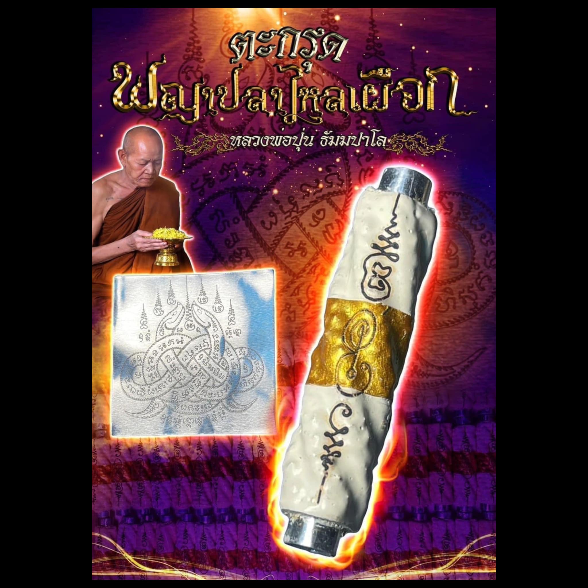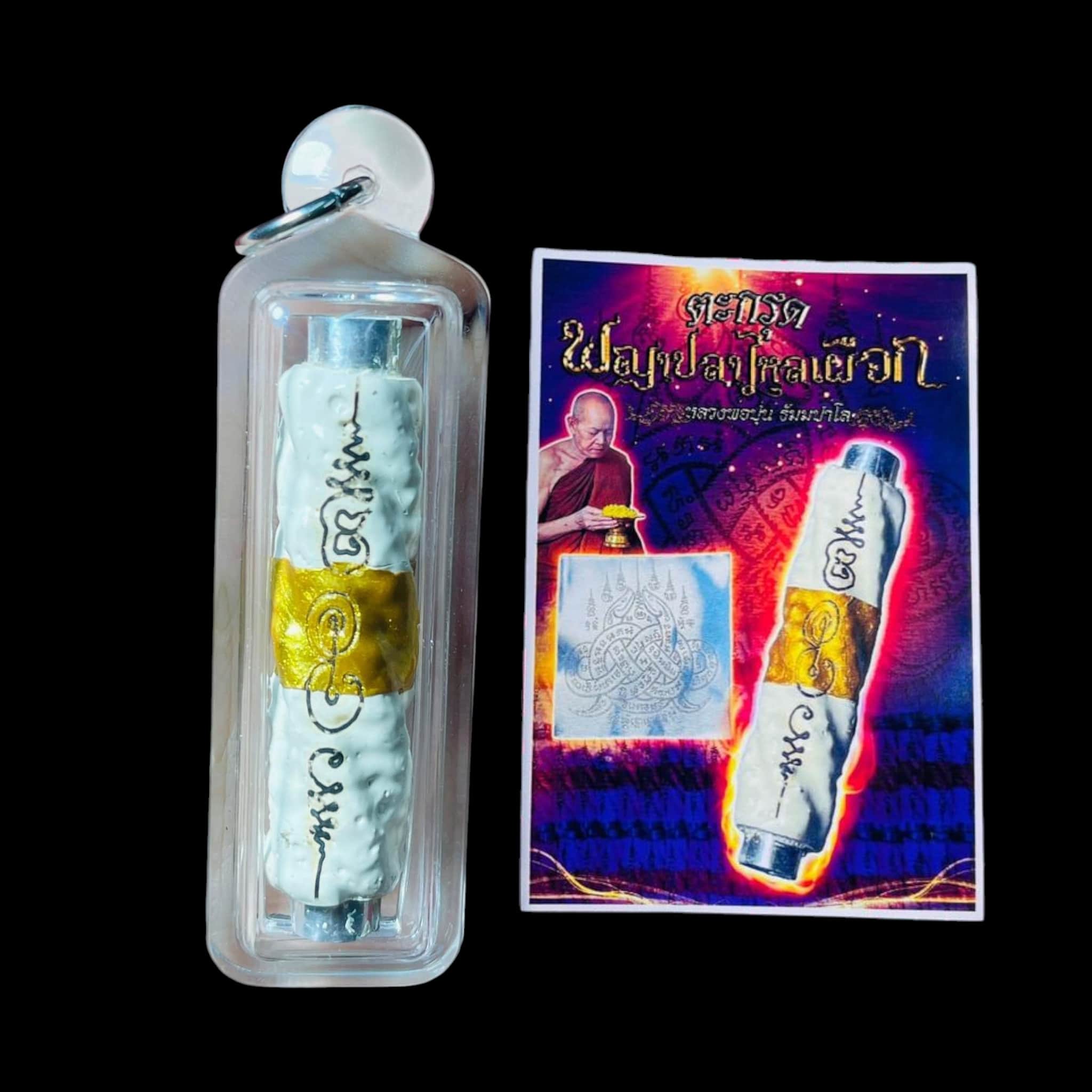 • Material: Traditional rolled takrut scroll infused with sacred inscriptions